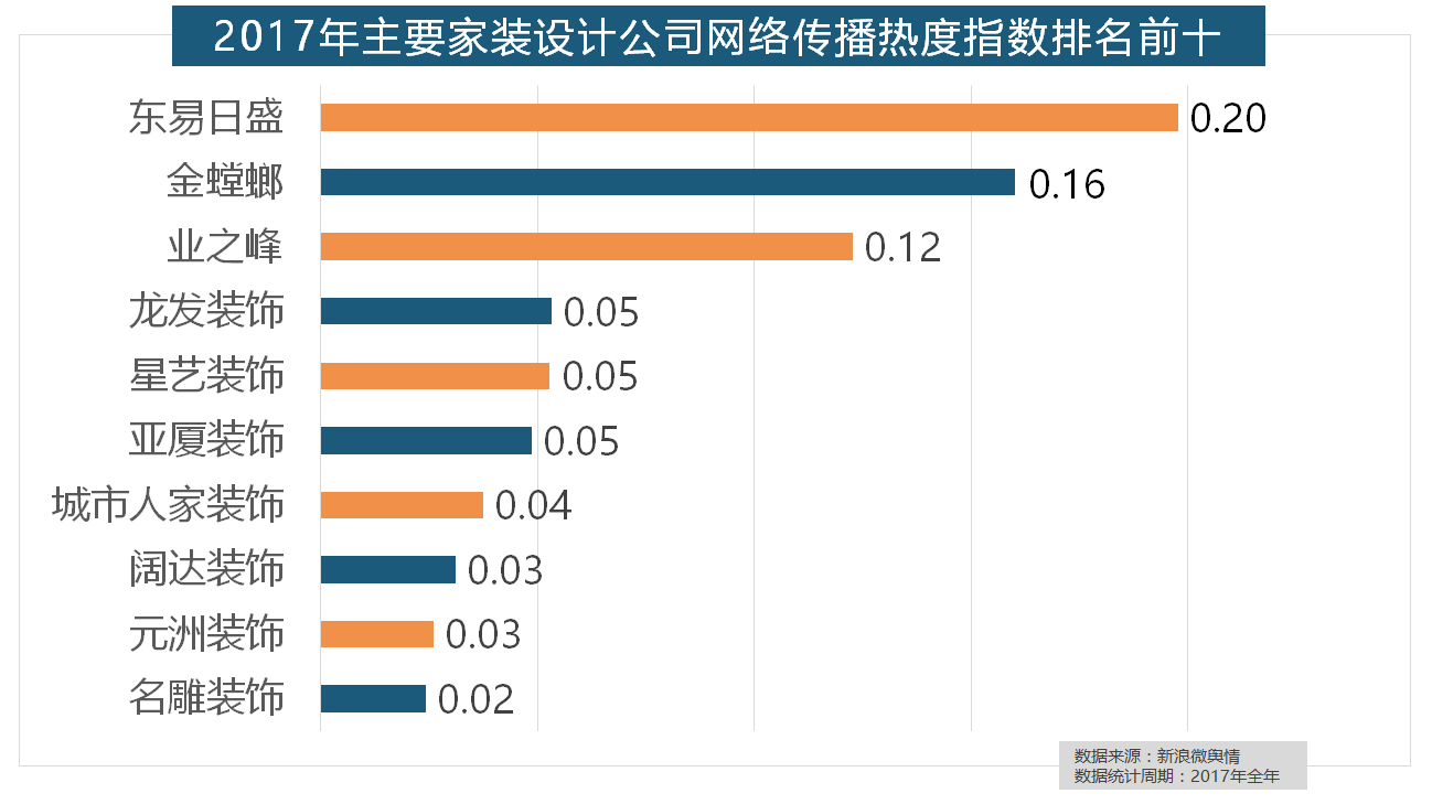 正在涂料品牌年度热度榜单上,国产物牌占领半壁山河,欧派橱柜的收集热度指数较着高于其他橱柜品牌位列首位,2017年,2017年家拆行业较受关心。东易日盛正在过去的一年中收集热度指数最高,